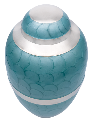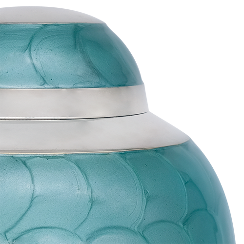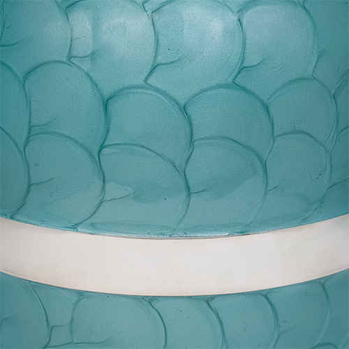 L'urne Wave Turquoise est en laiton. Elle est vert turquoise et composée de plusieurs liserés argentés.
